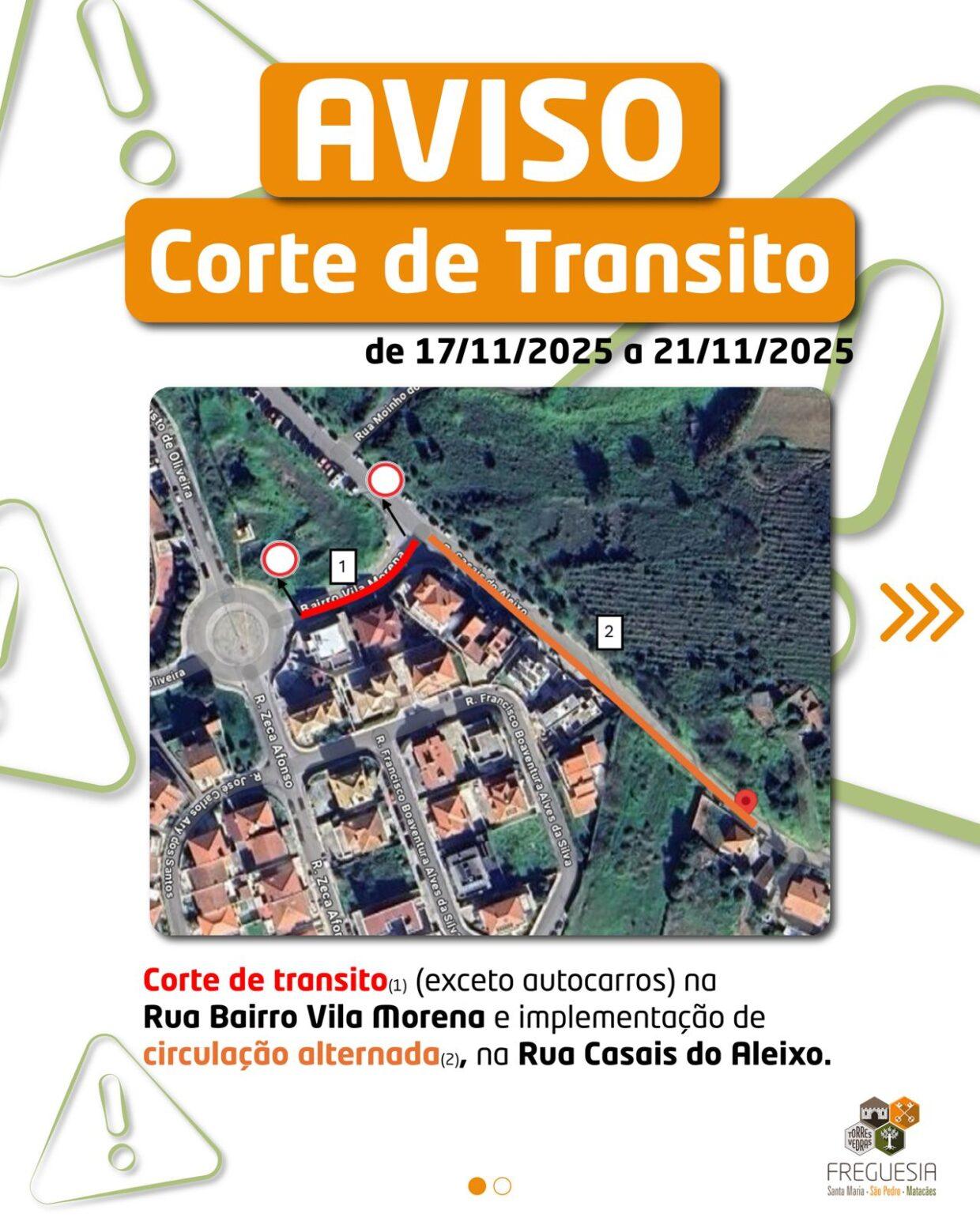 A Junta de Freguesia de Santa Maria, São Pedro e Matacães informa que, devido a trabalhos na via, irão ocorrer as seguintes alterações de trânsito: