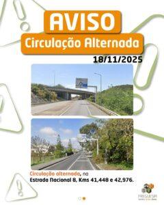 • Circulação alternada na Estrada Nacional 8, nos Kms 41,448 e 42,976.